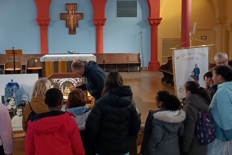 Le groupe scolaire « Sœur Marguerite » de Clichy, un ensemble scolaire flambant neuf, avait fait un travail préparatoire soigné avant la venue des reliques. Il impliquait corps enseignants, parents actifs en pastorale et plus de 250 enfants du primaire et collégiens en catéchèse, très réceptifs avec un dialogue pertinent, une interactivité dynamique pour découvrir ce que représentent les saints pour les catholiques : « des intermédiaires entre le Ciel et nous qui nous aident à prier » dira une élève de C.M.