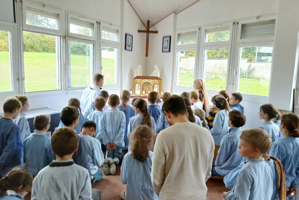 • Visite dans l’école des saints Louis et Zélie fondée il y a 20 ans, (comment fabrique-t-on un reliquaire et procession avec les enfants en habits de leurs saints patrons),