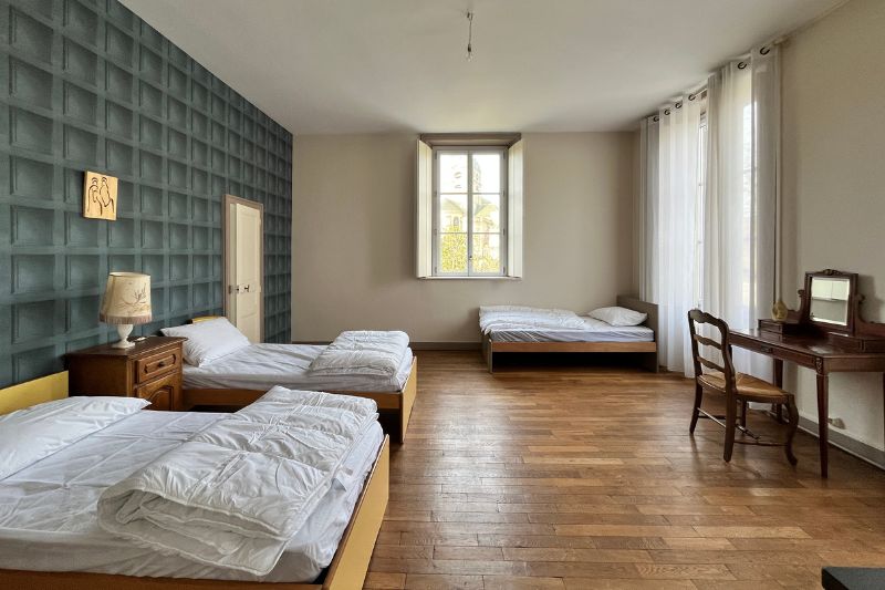 Au 2nd étage : oratoire, chambre (1 lit simple), chambre (3 lits simples), salle de bain avec toilettes, chambre (1 lit double et 1 lit simple).